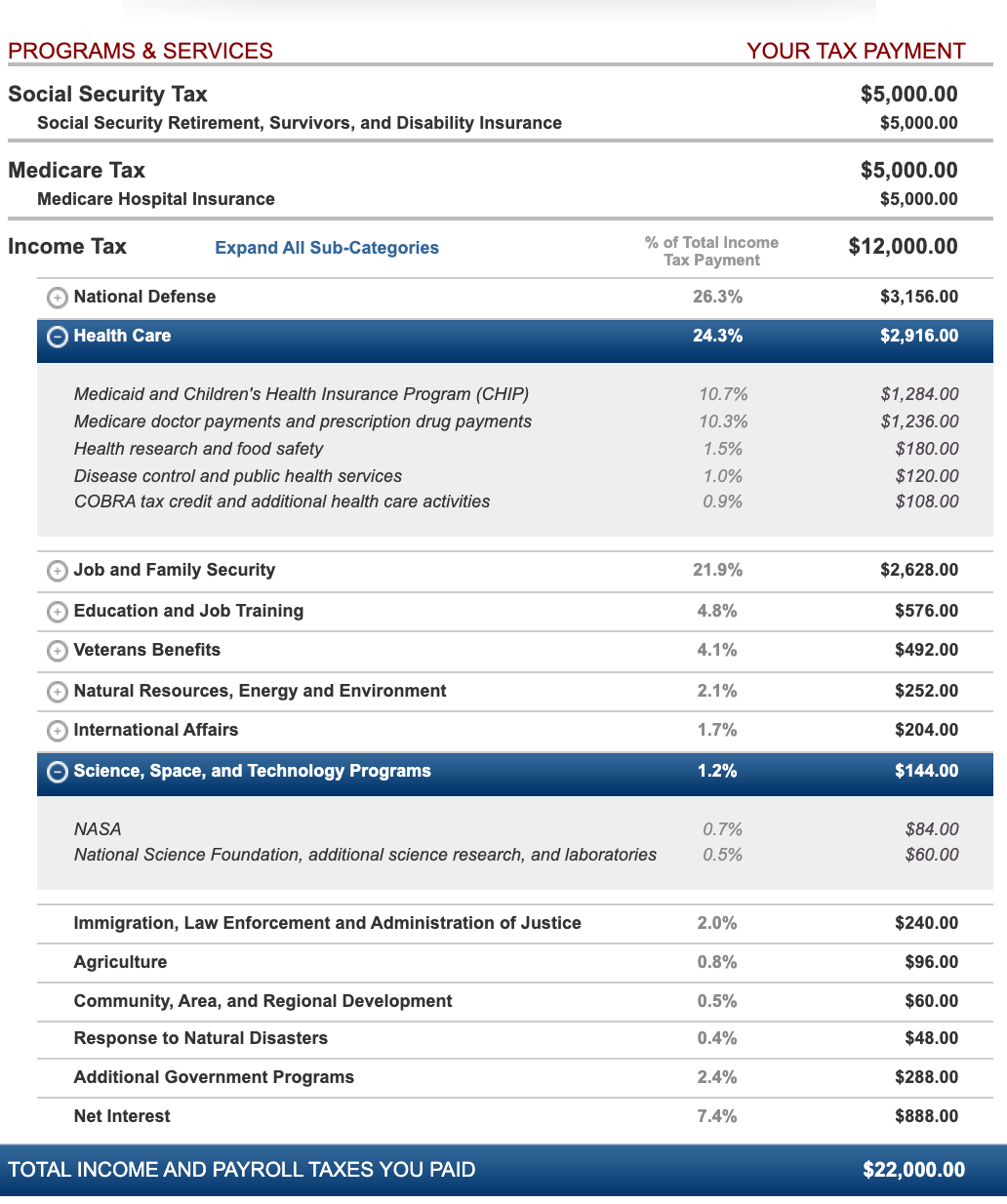 During my internet research I came across this archived tax receipt calculator. It was a tool provided by the government to calculate exactly where your money was going.