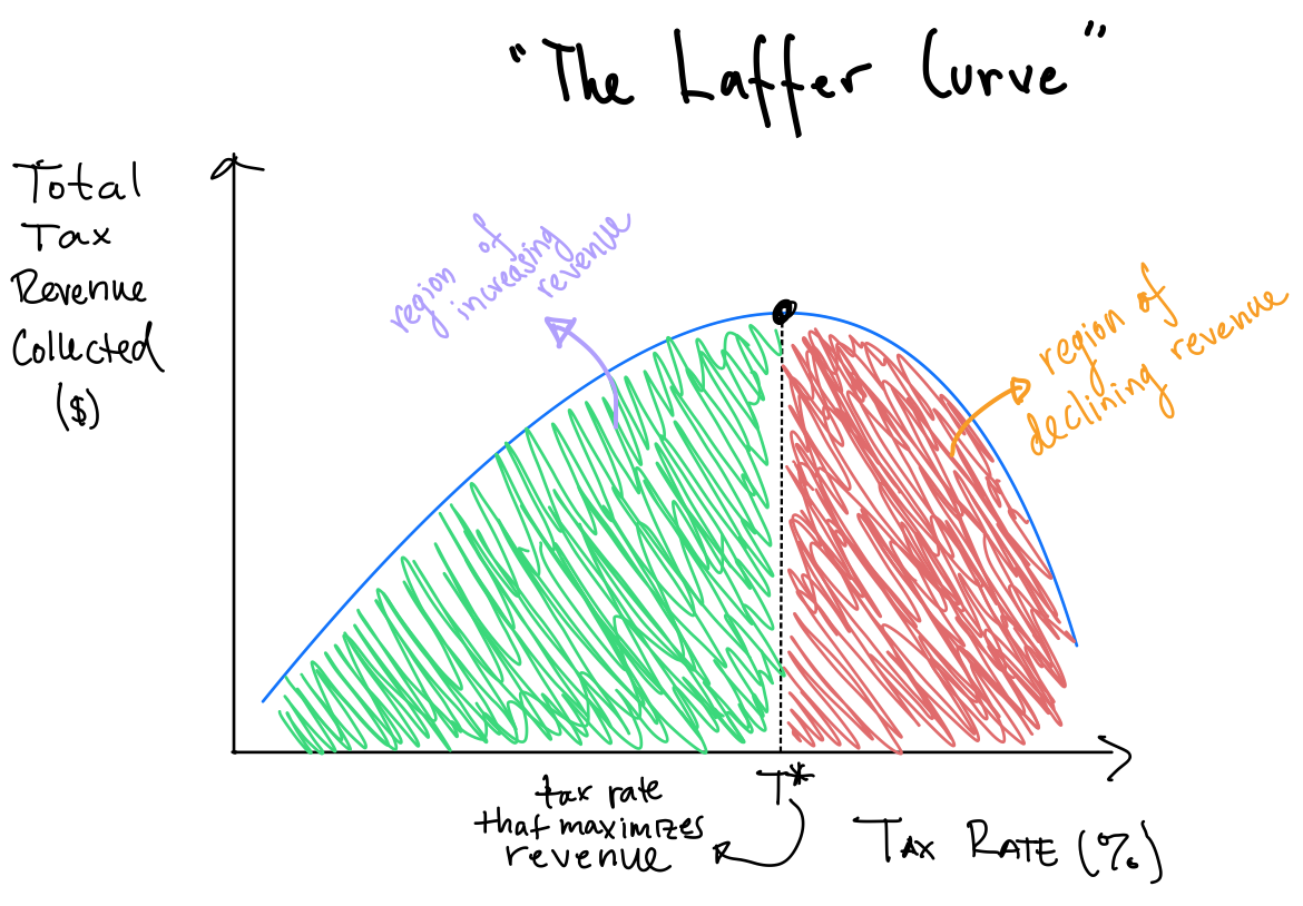 an aside - our LPS' discussion of tradeoffs with taxes and work/investment incentives alludes to The Laffer Curve, shown below.